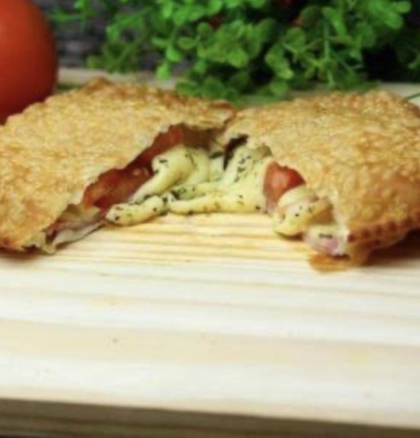 Massa caseira, presunto,queijo mozarela,calabresa e orégano