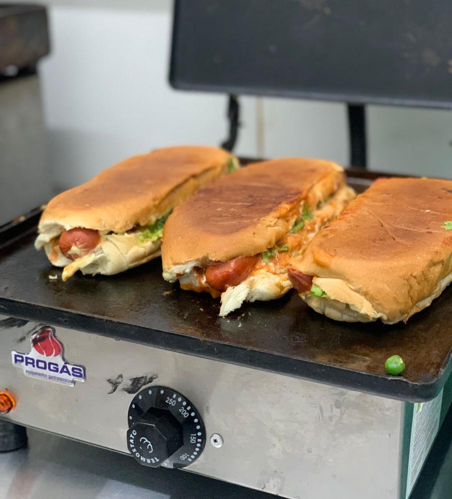 Pão, maionese caseira,molho especial, queijo,frango desfiado,salsa,batata palha,tomate,alface,milho e ervilha fresquinhos